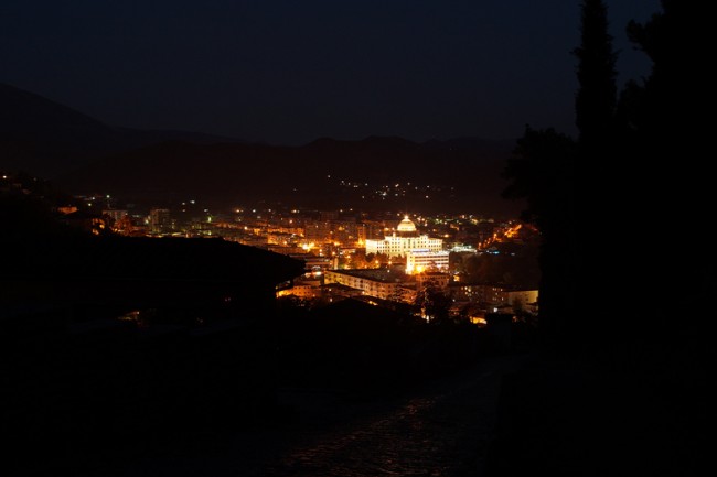Berat w 2007 roku został wpisany na listę Światowego Dziedzictwa UNESCO. Jest to bardzo stare miasto. W swojej historii wielokrotnie przechodziło z rąk do rąk. Było Tu Imperium Rzymskie, było Bizancjum, ba, dotarli tu również Bułgarzy. Ponieważ dotarliśmy tu późnym popołudniem, pierwszy spacer wykonałem razem z Rafim już po zmroku. Widoki były piękne, ale po powrocie czekały na nas wściekłe i nieco przerażone małżonki. Nasze kampery stały na głównej ulicy i podczas gdy my podziwialiśmy miasto, nasze małżonki walczyły z jakimiś miejscowymi kobietami, które usiłowały je okraść. Ciekawie nie było. W związku z zaistniałą sytuacją, na nocleg przestawiliśmy się gdzie indziej – za budynek Uniwersytetu. Tam było w miarę spokojnie. Następnego dnia, już całą grupą, udaliśmy się oglądać miasto.