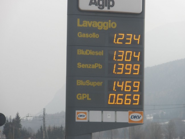 Ceny paliwa w okolicach Bormio we Włoszech z 20.03.2010