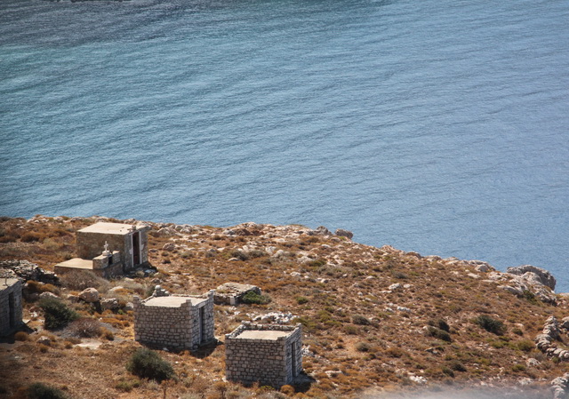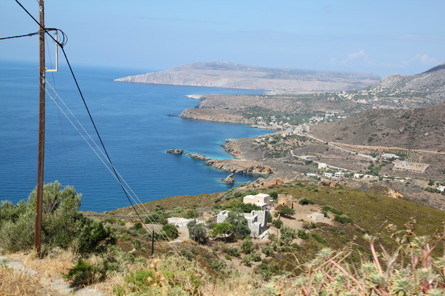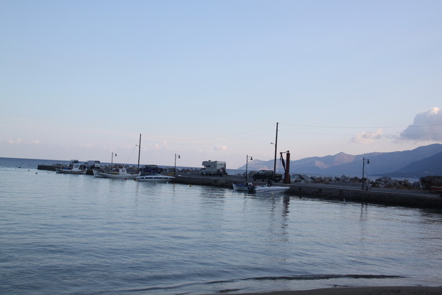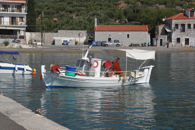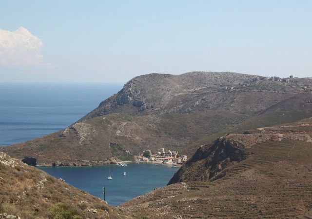Powoli dojeżdżamy do Porto Kagio, kolejne zaczarowane miejsce ale nie ma gdzie stanąć więc "pędzimy" dalej. Żeby dostać się na wschodnią stronę półwyspu wspinamy się stromymi serpentynami do góry zdającej się nie mieć końca momentami trzeba na jedynce. Widoki rekompensują wszystko. I tak dojeżdżamy do Kotronas gdzie cumujemy na noc na kei (36.61971 22.49388). Z Brytyjskiego forum posiadłem informację że przy pochylni do wodowania łódek za lewym łukiem jest kran idę sprawdzić i jest. Po małym spacerku znajduję jeszcze kran 50m dalej przy wejściu na cmentarz, a na plaży prysznic.