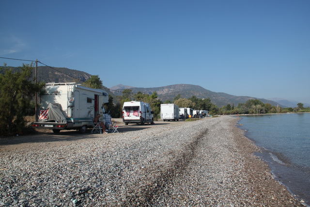 Przez ciągnące się ładnych parę kilometrów winnice i gaje oliwne dojeżdżamy do znanej nam już z ubiegłego roku miejscówki w Dimitriada (39.252179, 22.814419).
