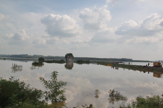 Jest pusto, cicho i spokojnie. Nazajutrz pogoda zaczyna się psuć, wieje i zaciąga się, ostatnia kąpiel tego lata w Greckim morzu, i powoli zbieramy się do powrotu. Przeskakujemy Grecję, Macedonię i stajemy na noc na pierwszej dużej stacji przy autostradzie w Serbii. Dokleja się do nas Defendrer z parą starszych Szwajcarów. Oczywiście w Macedoni było tankowanie pod korek i puste karnistry. Przy śniadaniu decydujemy się na trasę przez Rumunię. W Nisu odbijamy na Kładowo chcemy przekroczyć granicę tamą na Dunaju. Jadąc wzdłuż Dunaju widzimy skutki wielkiej ulewy, wysoki stan wody i obsunięte skarpy a ok 30 km przed Kładowem cała droga w glinie i nagle stop, droga zamknięta. Ludzie mówią że dalej jest tak zalane że droga będzie zamknięta z miesiąc. Patrzę w mapę i nie jest ciekawie ale strażak podpowiada że 30km z powrotem na wysokości Negotina jest małe przejście graniczne przez most. Głupek (GPS) nic tym nie wie, mapy też i znów sięgam do tableta z Open Street Maps Android i jest(44.300142,22. 560761). Mamy mały problem z dojechaniem do przejścia, a tam cicho i spokojnie. Po chwili idę szukać czy tu ktoś jest i słyszę że trzeba poczekać, dziwne bo kolejki nie widzę ale na wszelki wypadek nie awanturuję się. Serb pyta dlaczego tędy jedziemy a kiedy mówimy o zalanej drodze odpowiada, tak wiem. Przejeżdżamy przez tamę z elektrownią na drugą stronę a Rumuni chyba z nudów zaczynają prześwietlać nasze papiery i zaglądać do wszystkich zakamarków. W końcu po 20 minutach jedziemy dalej.