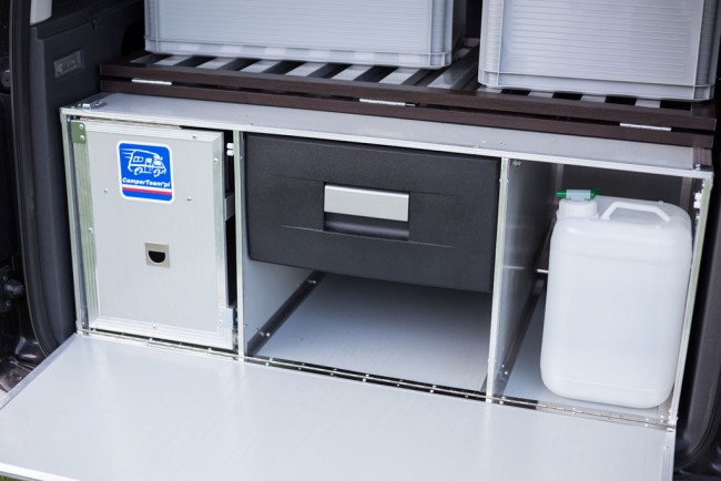 Można tego typu samochody zabudować na dwa sposoby: konstrukcja drewniana i pod nią bagaże, albo wysuwane szuflady. Materac tak jak u Ciebie.