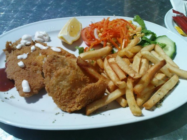 Spacer-5.jpg Taki obiadek (2 danie) można zjeść idąc przy samym brzegu oceanu. Cena 6,5 E. |