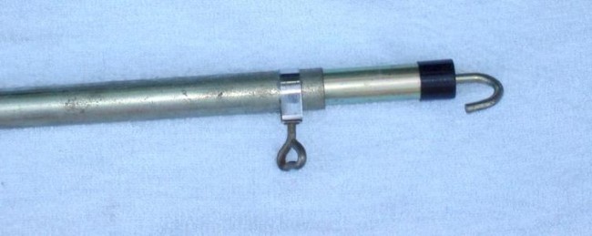 | Moje rozwiązanie jest proste, aluminiowa rura przymocowana do bagażnika rowerowego za pomocą uchwytów do rur, do wysunięcia wystarczy poluzować zacisk. |