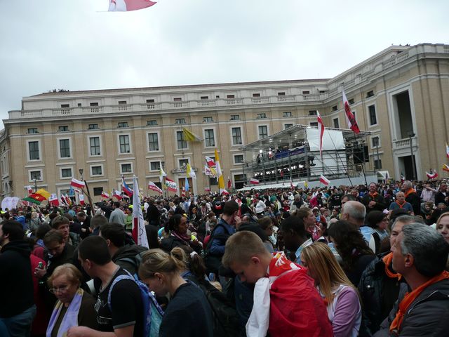 W momencie zakończeniu uroczystości zrobiliśmy szybki zwrot w tył, z nadzieją, że uda nam się wydostać z tłumu i dotrzeć nad Tybr do autobusu, żeby jak najszybciej wrócić do kamperka i odespać zarwaną nockę.
