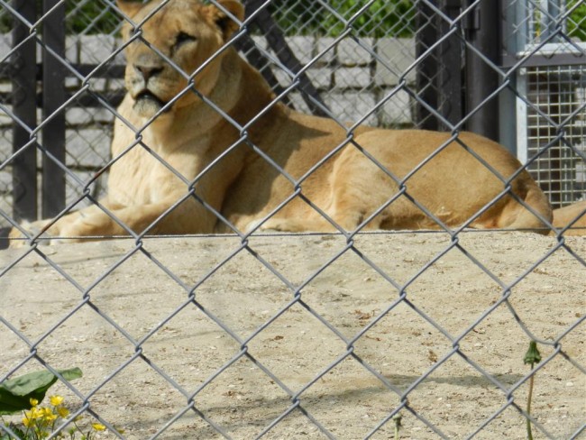 Spory kawałek drogi trzeba było przejść ,aby dotrzeć do przystanku. Po drodze wypatrywaliśmy wybieg z lwami ,które ( chyba czasowo ) były przeniesione w inne miejsce.