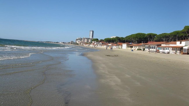 Rano nie możemy się „odkleić” od plaży. Postanawiamy wykorzystać piękną słoneczną pogodę i spędzić tutaj przedpołudnie. Po śniadaniu na plaży idziemy na spacer, a potem kąpiel w krystalicznie czystym morzu. Trochę lenistwa, ale niestety trzeba ruszać w dalszą drogę. Zajeżdżamy na oddalony o 10km parking dla kamperów gdzie jest serwis. Robimy zrzut, ale wody nie daje się nabrać bo leci tak wolno, że musielibyśmy chyba czekać z godzinę na napełnienie zbiornika. Dalej jedziemy trasą SS1 do oddalonej ok. 100km Pizy. Parkujemy na płatnym parkingu w pobliżu krzywej wieży. Parkowanie kosztuje 0.6€/godz. i jest płatne w parkomacie. Uwaga na czarnoskórego parkingowego! Na wjeździe zapytał nas na jak długo. Powiedziałem, że na 2 godziny. Wskazał nam miejsce i przyszedł z biletem z parkomatu. Zażyczył sobie 6€. Gdy wyraziłem zdziwienie stawką cena spadła do 2.40€ bo zajmujemy dwa miejsca parkingowe. To już wydało mi się logiczne i nie dyskutowałem dalej choć wydaje mi się, że i tak połowa tej sumy powędrowała do jego kieszeni. Idziemy na spacer obejrzeć słynną krzywą wieżę. Po powrocie postanawiamy spędzić kolejną noc przy plaży. Na szybko wyszukuję parking w miejscowości Marina di Vecchiano i ruszamy bo chcemy zdążyć na zachód słońca. Niestety najpierw nawigacja wprowadziła nas w błąd chcąc jechać prywatną zamkniętą drogą więc musimy wracać i nadrobić parę kilometrów, a potem okazało się, że parking zajęty jest przez wojsko bo robią sobie jakieś nocne ćwiczenia. Zmuszeni jesteśmy zaparkować trochę dalej niestety bez widoku na morze. Idziemy na plażę, ale na zachód słońca nie zdążyliśmy Wieczór spędzamy na plaży rozświetlanej co jakiś czas racami słuchając odgłosów strzałów. Na szczęście ok. 22:00 strzały ucichły i można było spokojnie iść spać.