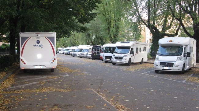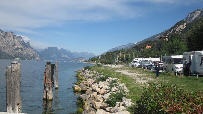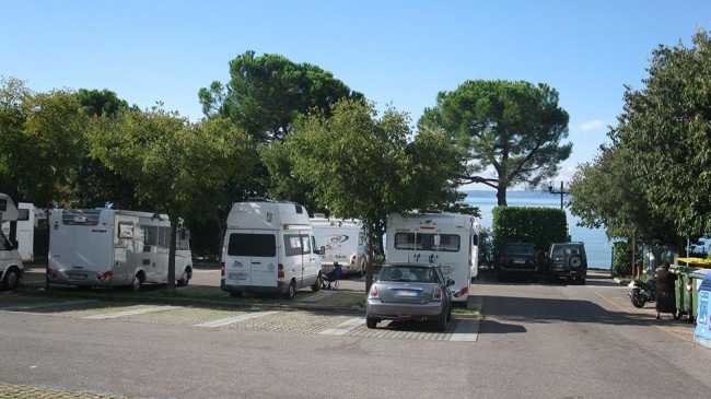 N 45.561741 E 10.715001 – Garda, atrakcyjnie położony parking dla kamperów, 1,8€/h, 10€/dzień, jest serwis z którego można skorzystać bez zatrzymywania się na parkingu
