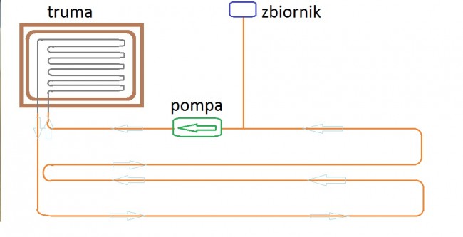 Kolejne co napisałeś "Płyn w wężownicy zbyt wolno sie nagrzewał od trumy a obieg pompki był za szybki nie działało to właściwie"