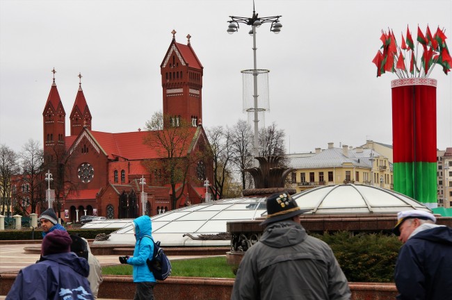 Przez okna autokaru widzieliśmy pod Pałacem Republiki demonstracje opozycjonistów białoruskich.