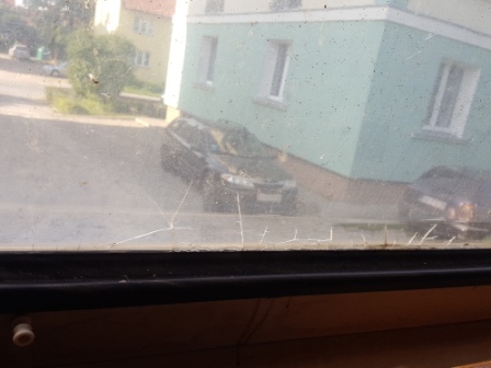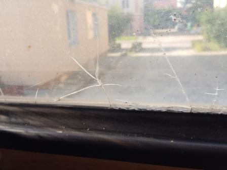 Jakoś tak na ostatnim wyjeździe spojrzałem na okno w alkowie i dostrzegłem dziwne wzorki na szybie. Wczoraj wdrapałem się tam ( bo alkowa służy na razie za magazynek) i mam pękającą szybkę wewnętrzną! Nie mam pojęcia co to się dzieje. Zacząłem przeglądać zdjęcia które robiłem wcześniej i jakoś tak nie mogę stwierdzić że to było, ale też na tych fotkach nie widać najlepiej tych miejsc.