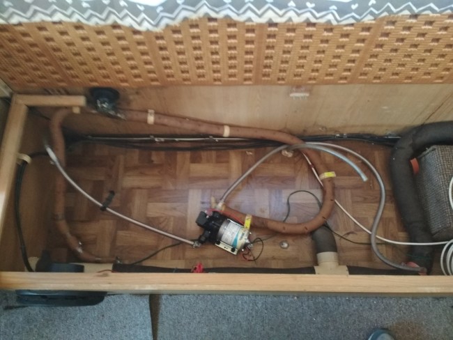 | Tydzień temu odebrałem kampera od mechanika i po raz pierwszy chciałem nalać wodę do układu, włożyłem wąż, odkręciłem wodę, poczekałem chwilę, odszedłem na bok, a za moment usłyszałem szum wody, lała się po całej długości, okazało się, że nie ma zbiornika, wszystko lało się do środka. Na szczęście kamper stał pochylony na prawy bok, miałem niezły ubaw. Do tej pory wszystko wyschło, prawie ale ślady potopu zostały. 😂 |
