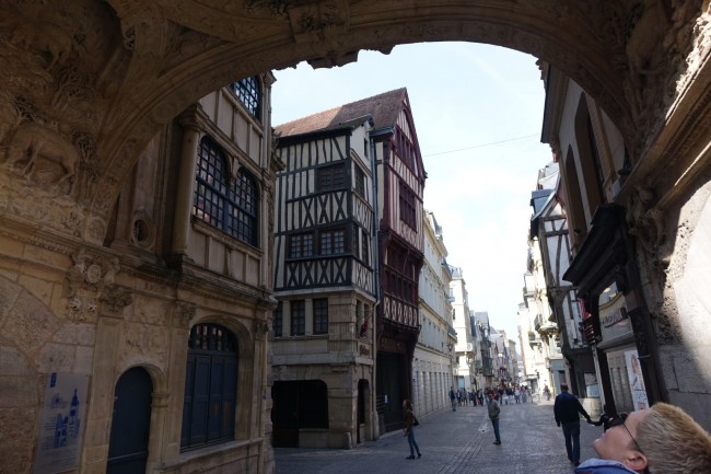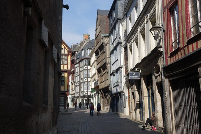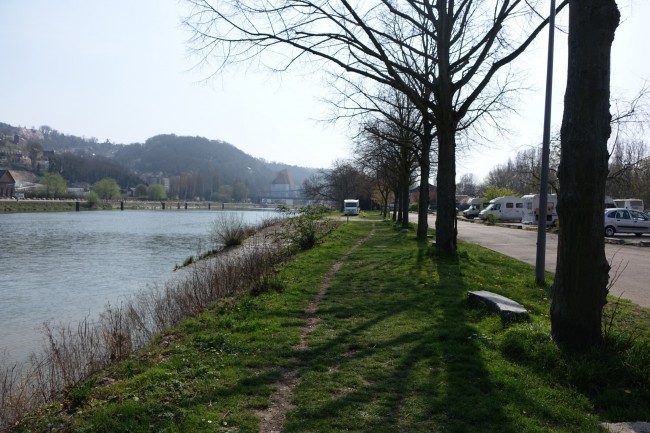 30.03. Nasyceni i zmęczeni wielkim miastem, ruszamy do Normandii. Jadąc przez małe miasteczka, często wzdłuż Sekwany, docieramy do Rouen. Parking nad Sekwaną bez serwisu. 49.43001, 0.34705