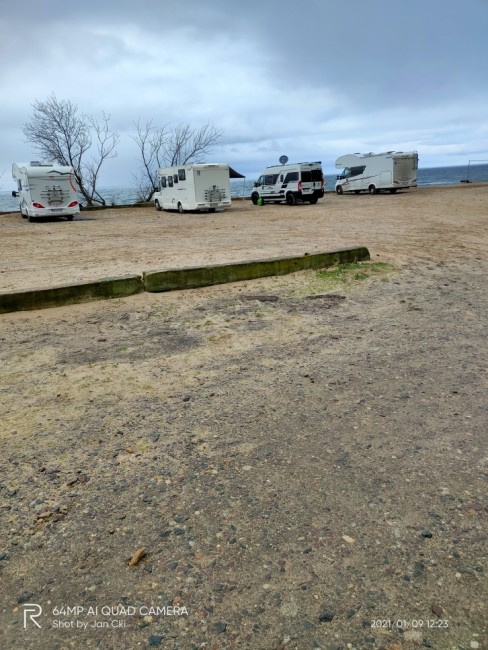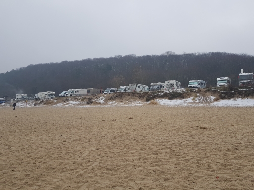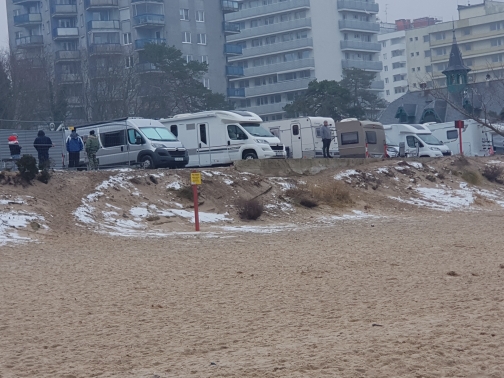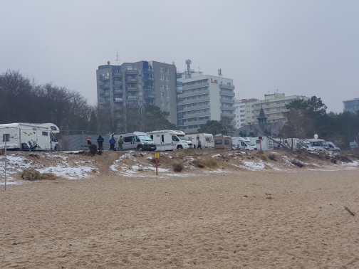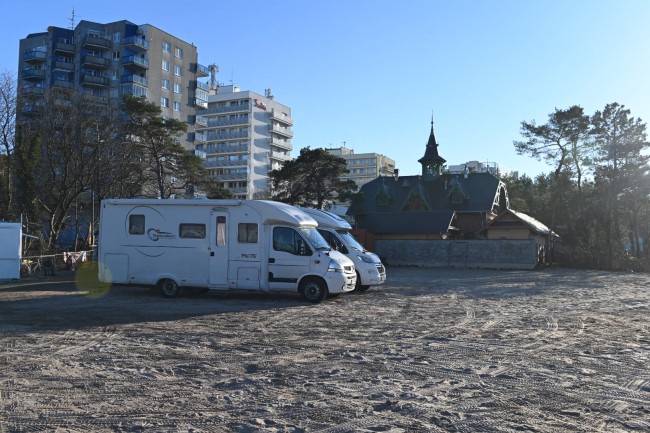 Dzisiaj w Międzyzdrojach kilka kamperów na Camping Beach patrzy w morze.