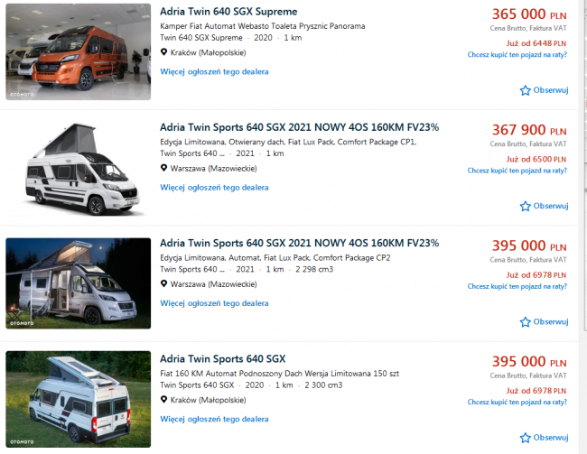 w 2019 r kolega kupił nowego blaszaka ADRII za ok 200tyś dziś najtańszy na otomoto - 365 tyś . masakra.