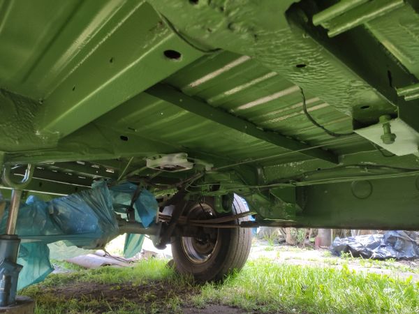 IMG_20210602_162248.jpg podłoga oczyszczona, nałożona farba okrętowa, na to Dinitrol 4941 jako konserwacja |