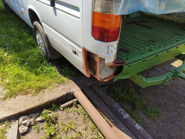 Jedno co mogę powiedzieć o zakupionych częściach - reparaturkach, to jeżeli ktoś jest zainteresowany remontem takiego Sprintera - jakość tych elementów to jakieś nieporozumienie. Ze wszystkich elementów, które kupiłem ( a było ich kilka ) jak dotąd najlepiej pasował stopień kierowcy ( najlepiej to znaczy, wymagał najmniej rzeźbienia, żeby wszedł w docelowe miejsce ). Pozostałe reparaturki były niepodoginane, miały inne przetłoczenia jak oryginalne itp. Dlatego też tyle czasu trwają prace blacharskie. Poniżej kilka zdjęć