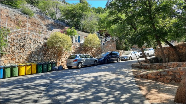 Parcele są położone tarasowo i schodzą w dół w kierunku morza. W zasadzie większość z nich nadaje się tylko dla małych aut. Nie wiem, jak można tam wjechać, a potem zawrócić, aby wyjechać - autem z cepką?