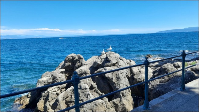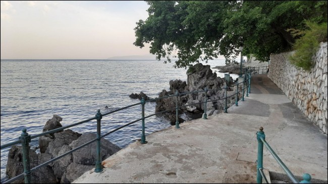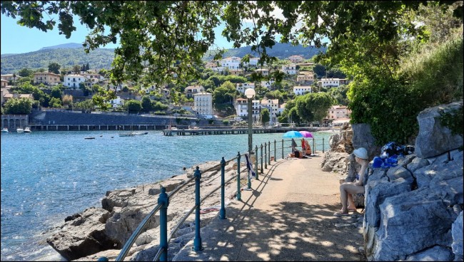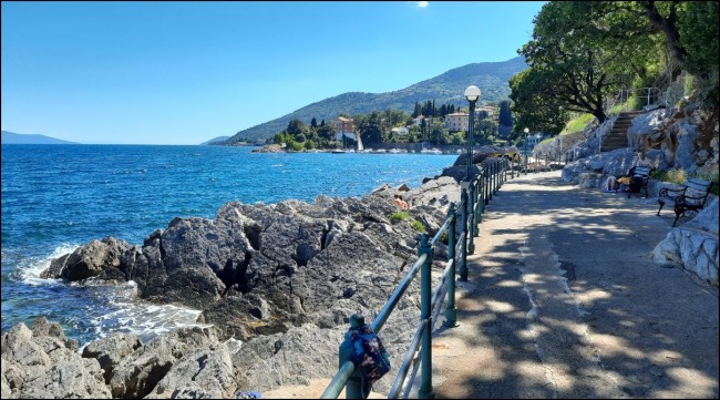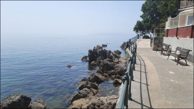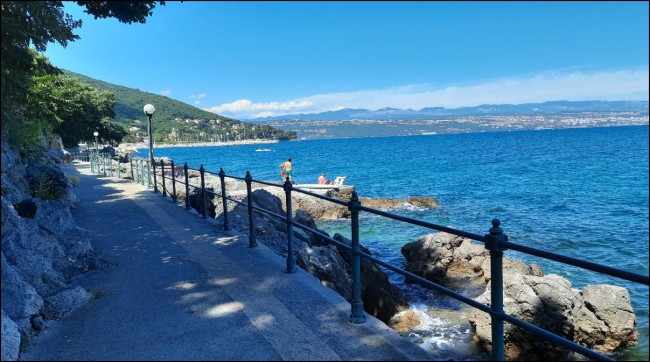 C.d. fotek z pobliskich okolic Campingu Opatija w Ičići na Istrii. Deptak wzdłuż linii brzegowej morza.