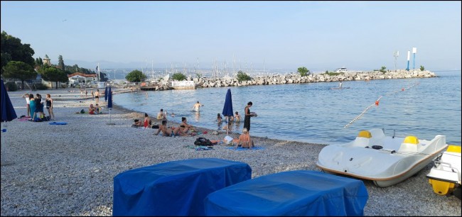 Samych portów jest sporo. Najbliższy znajduje się na wysokości campingu. Maszerując deptakiem wzdłuż linii brzegowej morza napotkamy kolejne porty i niewielkie plaże. Wszystko byłoby ok, tylko ta wstrętnie zimna woda. Ale z tego co pamiętam, to podczas mojej 1 wizyty w tym miejscu (ponad 10 lat temu) też tak było.