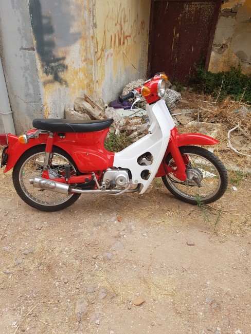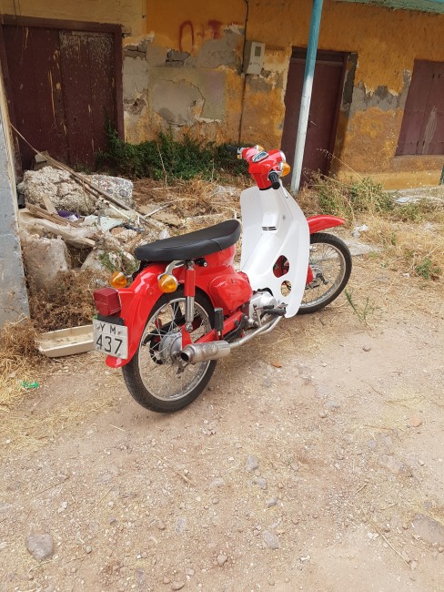 Wypatrzyłem takie cudo i widujemy go a akcji, gdy śmiga z tęgim właścicielem po Methanie. Będzie próba zakupu. Sprawdzałem już są w Pl takie ale nowsze dużo. To Honda Super Cub.