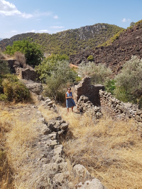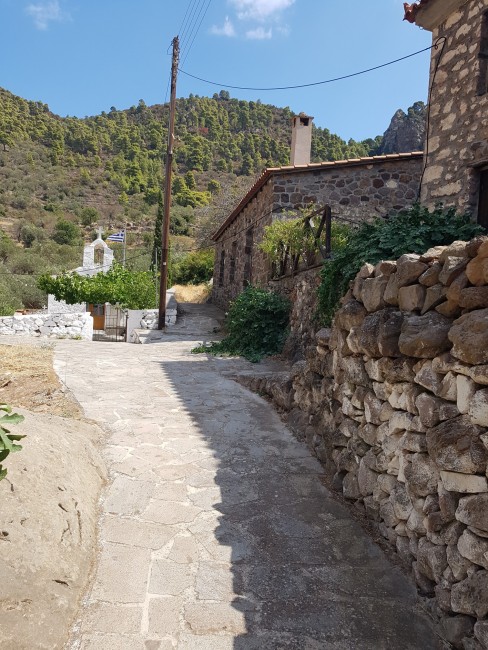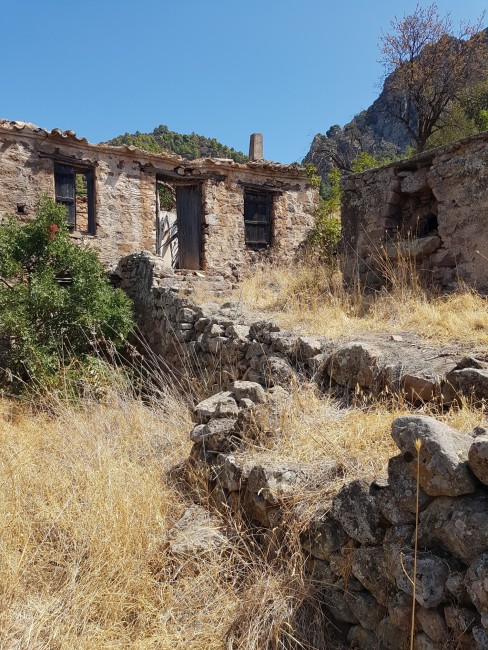 Kameni Chora czyli spalona wieś. Niemal opuszczona, nieco dalej za opisywanym kiedyś wulkanem udostępnionym do zwiedzania.