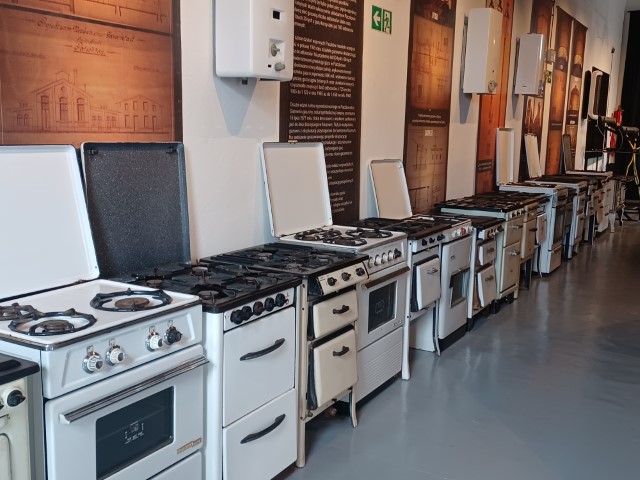 Mamy tutaj unikatowy ciąg produkcji gazu z różnymi urządzeniami, rurami i zbiornikami prezentowanymi w budynkach dawnej gazowni i na terenie pomiędzy nimi. W jednym z budynków jest taki jakby salonik czy jadalnia z długim stołem, pięknymi meblami i retro adapterem oraz ozdobnymi gazowymi lampami, prysznicami. A potem wchodzi się do kolejnego „warsztatu”, a tam najbardziej zaskakujące eksponaty na gaz: małe kaloryfery, kominki gazowe, lodówki na gaz (to trochę jak w kamperze), żelazko, lutownica, palarka kawy, a nawet magiel na gaz. Pod ścianą stoi rząd starych modeli kuchenek na gaz i gazowo-węglowych. Oczywiście są tu również uliczne latarnie gazowe i zdobione domowe żyrandole. Jest zaaranżowana kuchnia i łazienka. Ostatnim obiektem na trasie zwiedzania jest duży okrągły zbiornik, w którym zgromadzono wystawę 600 gazomierzy, pochodzących nawet z XIX wieku. Mają różne kształty, kolory i są nawet takie na żetony.