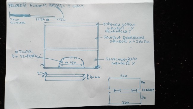 Jednak chcesz zrobić tą szufladową część podnoszoną do góry??