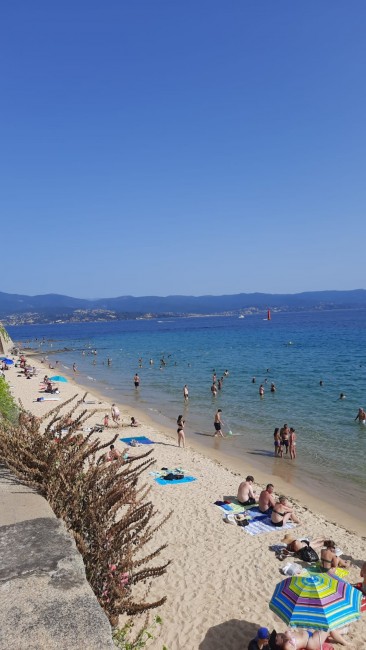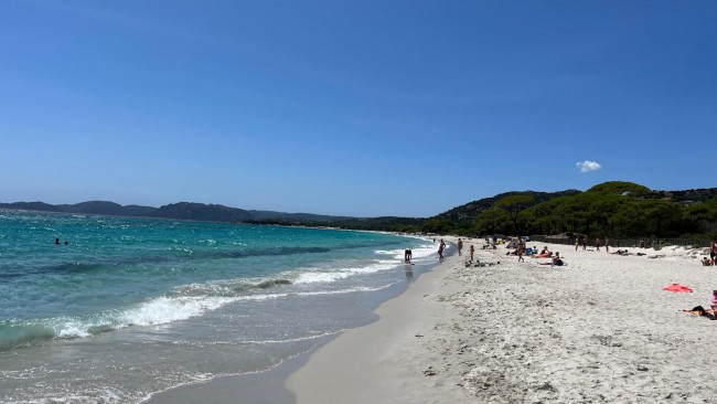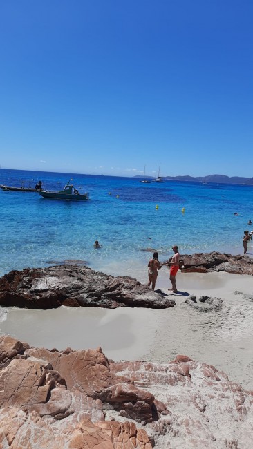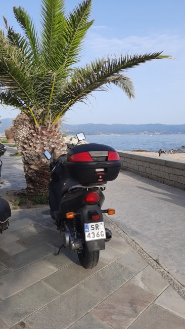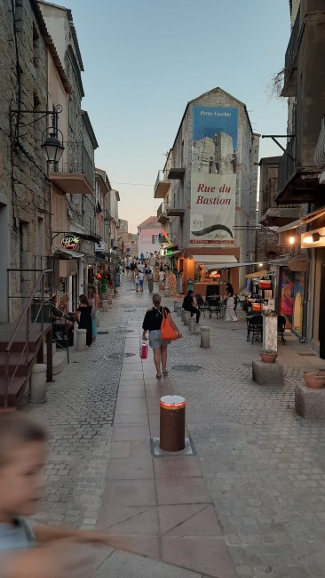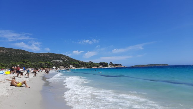 Tutaj chcemy zostać i trochę poleniuchować. Jest ładna plaża, cień przy kamperze,wino w lodówce i jak zgłosisz wieczorem to rano będzie na ciebie czekać świeża bagietka w recepcji. Na plaży ludzi trochę, bo jest to w końcu top de top, ale tragedii nie ma. Naczelne dowództwo zadowolone, korzysta z kąpieli morskich i słonecznych, a ja w cieniu parasola podziwiam lazur wody i kontempluję leżącą i przechodzącą obok mnie piękną naturę, jest sielsko i anielsko. Niestety w czwartek nasi znajomi nas opuszczają, byli na wyspie tylko tydzień (praca wzywa) a my po południu na mopliku wybieramy się obejrzeć o 15km oddalone od nas Porto-Vecchio. |