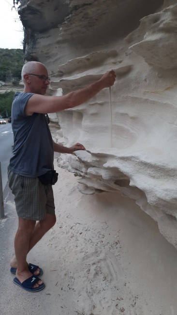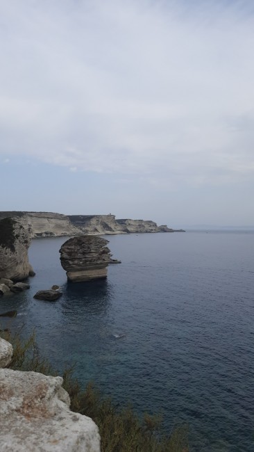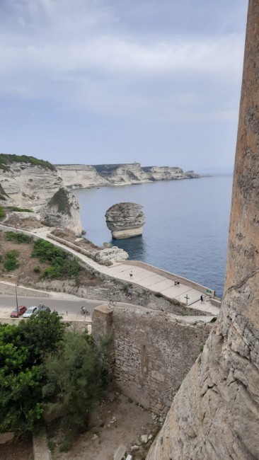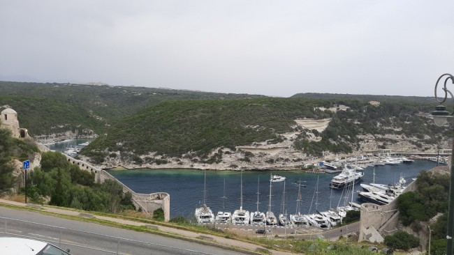 Czym dalej na południe teren jest mniej górzysty, więc i drogi trochę szersze. W Bonifacio chcieliśmy stanąć na parkingu przy porcie, ale dla kamperów jest zakaz. Trochę wyżej jest kemping, ale niemiła właścicielka mów,i że nie ma miejsca dla nas .Jednak trochę wyżej Grzegorz znajduje parking przy prywatnym domu gdzie Pani chętnie za 10 ojro nas przyjęła pod warunkiem, że nie będziemy tam spać. Zostajemy i kierunek port i stare miasto, które jest bardzo urokliwe, zbudowane na skalistym klifie. Stąd widać już Sardynię. Tu prawie do wieczora zwiedzamy całe miasto. Jednak na wyraźne polecenie naszych żon ‘’my chcemy na plażę’’ opuszczamy Bonifacio i jedziemy na plaże Palombaggia, która ma być top de top na Korsyce .Dojeżdżamy po zmroku na jeden z trzech kamperstopów, które się tam znajdują . Oczywiście stajemy na tym najbliżej plaży ( 5min ). Duże pinie gwarantują cień a rozległy teren że jest luz. 14E pierwsza noc, następne 10 a serwis 5 bez prądu. Kurek i prysznic z zimną wodą gratis. |