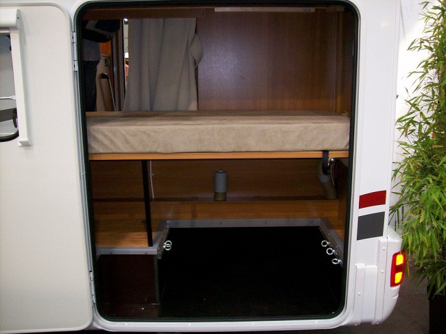 Ze zdjęć kamperków wynika że pojedyncze poprzeczne łoże z reguły jest na wysokości (pi *oko) prawie 80 cm - butle gazowe i inne pierdoły się mieszczą. Nie widziałem wielu fotek z piętrowym łożem z tyłu a i tak trudno ocenić wysokość od podłogi na fotce. |