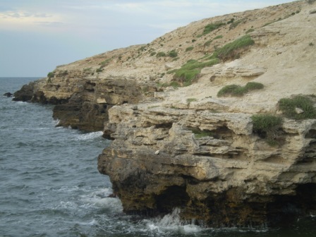 Cieszę się że ktoś to czyta. Postaram się napisać więcej. W Mieżwodnoje nam się podobało ale ja szukałem lepszego miejsca do pływania na desce. Takie miejsca to jeziora lub limany do kórtch jest dobry dostęp a jednocześnie są oddzielone od morza. Warunki wiatrowe są tam takie jak na morzu a fala dużo mniejsza.Dlatego udaliśmy się do wsi Oleniewka.Najpierw pojechaliśmy na najdalej wysunięty cypelek za latarnią morską.Było warto popatrzeć i zrobić kilka fajnych zdjęć.Na niektórych można zobaczyć w jaki sposób biwakujący tam dostawali się do wody.Poniżej widocznej drabinki linowej znajduje się jeszcze dłuższa lina. Po czymś takim zejść może bym się odważył ale wątpię czy udałoby mi się wejść .Ponieważ nie jesteśmy cyrkowcami to wróciliśmy do Oleniewki.