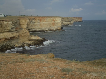 Rano zwiedzamy okolice . Mieżwodnoje to nieduża miejscowość wypoczynkowa z ładną plażą i nową zadbaną główną ulicą-deptakiem. Kupujemy czeburjeki przygotowywane na naszych oczach. To to takie jakby naleśniki ale z innego ciasta z mięsem,serem lub kapustą i grzybami, smażone na głębokim oleju. Tuż za miasteczkiem droga przebiega pomiędzy zatoką a rozległym limanem. Wzdłuż zatoki ciągnie się długa plaża .Można tutaj stanąć i biwakować na dziko.My jednak udajemy się do Czarnomorskoje.W przewodniku napisano ,że jest tam największa na Krymie piaszczysta plaża .W centrum miasta pomnik Lenina , dalej park i nawet zadbana aleja prowadząca do plaży.Długość tej "największej "plaży to około300 do 400 metów . Dalej ruiny zakładów przemysłowych natomiast z drugiej strony miasta znajdują się wielkie bunkry i opuszczone ,niedokończone osiedle .Wybrzeże strome i brak dostępu do morza.Tutaj zmieniamy plany i udajemy się na najdalej na zachód położony ptzylądek półwyspu Tarchankut.
