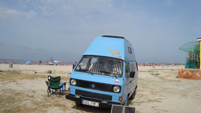 Szkoda,że Was tak z tego Mieżwodne popędziło,jest tam bowiem zupełnie przyjemne miejsce do biwakowania,nad samym morzem..i to oficjalne.Zjawia się bowiem przedstawiciel tamtejszej gminy z podręczną kasą fiskalną i pobiera opłaty 1,5 hr od osoby ,tyle samo za samochód i namiot.Piaszczysta i bardzo rozległa tam plaża przyciąga na wakacje i urlop średnią klasę ukraińską.Miarą popularności tego obozowiska jest bezpośredne połączenie autobusowe z Kijowem ( dwa razy w tygodniu) .