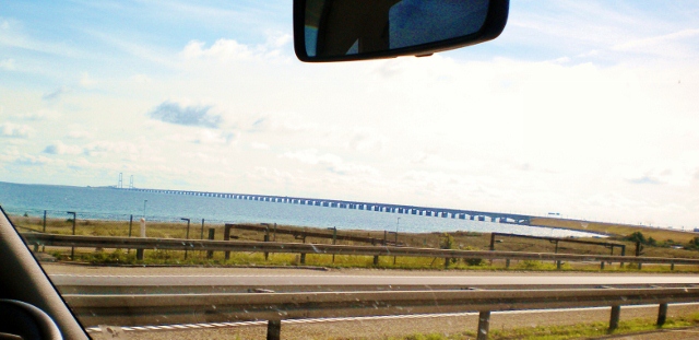 Wyspę Fionia /po duńsku Fyn/ z wyspą Zelandia /Sjalland/ łączy długi most 18 km . Przejazd dla kamperka kosztuje 335 koron. Bramki są tylko przy zjeździe z mostu. W Danii jest bardzo dużo mostów łączących wyspy i wysepki. Przejazd jest płatny tylko przez dwa mosty. Ten jak wyżej, oraz most łączący Danię ze Szwecją. Wjeżdżamy na most w miejscowości Nyborg. Podziwiamy rozpościerające się widoki po prawej i lewej stronie mostu. Po drodze mijamy przepływające pod mostem statki i ładną latarnię morską na wysepce Sprogo, gdzie można zjechać z mostu i na chwilę się zatrzymać.