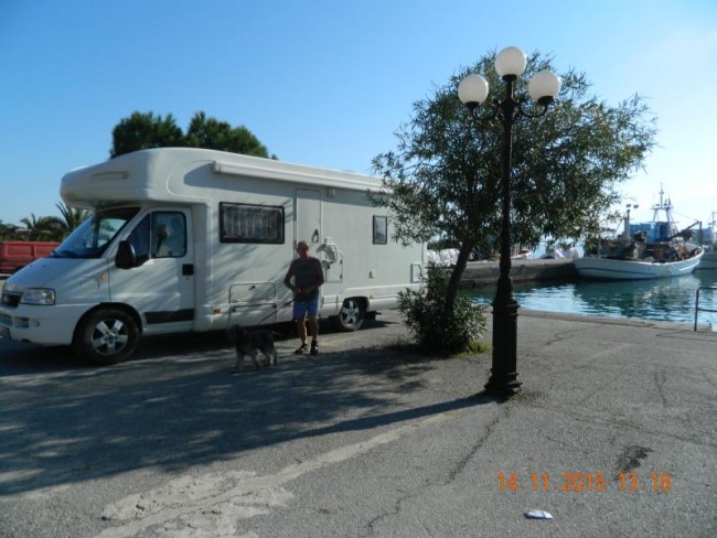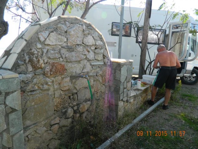 po kilku dniach,jedziemy do końca wyspy,sa jeszcze jedne źrodla,ale małe,w miejscowosci Gialtra.Trafia się mechanik dokreca filtr oleju.W Agios Georgios nie ma promu,musimy się wrocic do Loutro,ale jest swieto w cerkwi.Ja robie fotki i wracam do kampera z poczęstunkiem.