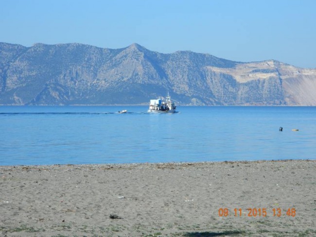 Jedziemy pokazać Kaziom wyspe Evia/Eubeja/.Troche to nam zajelo czasu.Prawa strona nieciekawa,jedziemy od mostu w Haldidzie,do góry prawa stroną,potem widok na plw.Pilon,aż wreszcie Loutro Edipson