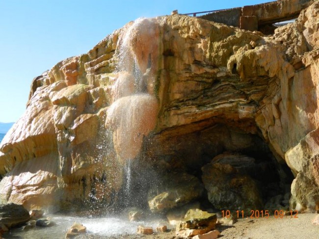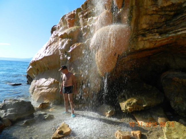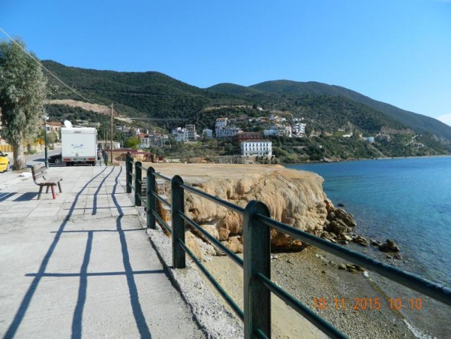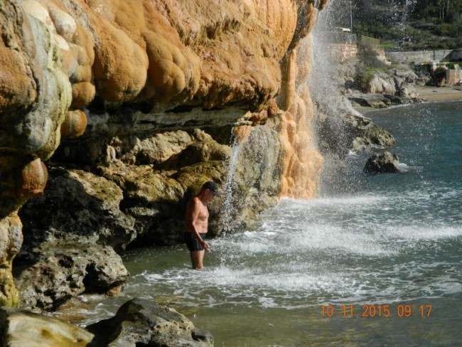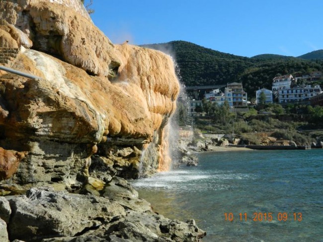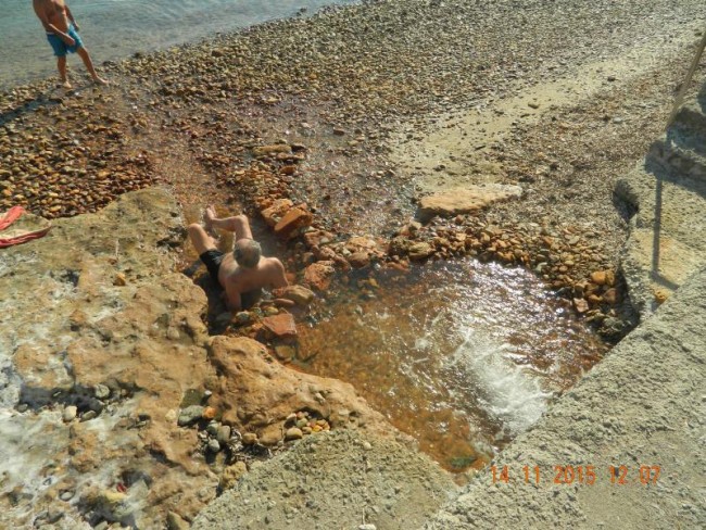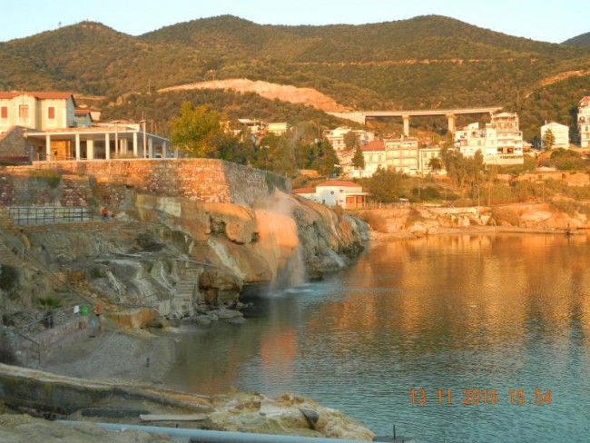 Loutro,ladne duże miasteczko kurort,hotele i wille.Sa 3 plaże termalne.Jedna latem platna.Teraz opiekuje się nia jedna greczynka.Woda tak goraca,ze nie da się stać pod ściana skaly.W naturalnych grajdołach można wode regulować.Jak byliśmy latem,to nie dalo się usiedzieć,mozna było się polewac.Teraz po gorącu sru do chłodnego morza.Ciekawa jestem czy ktoś z Was tam był,a pisałam już o tym miejscu.