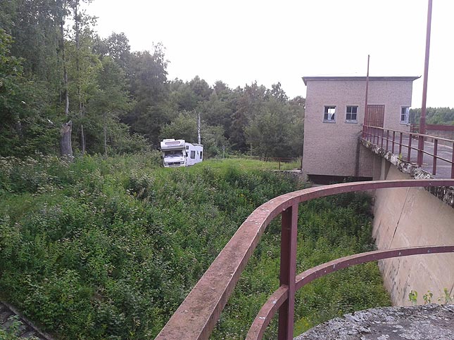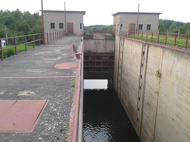 Śluza robi wrażenie Obchodzę ja dookoła . Nie ma możliwości wejścia na górę .
