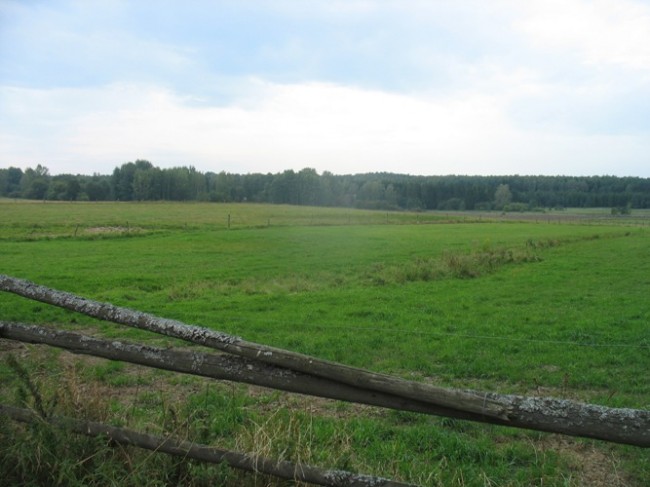 Niestety okazuje się ze pomysł z rowerem był taki sobie. Dopóki była łąka to jazda owszem . Ale tu już świeżo zaorane pole. Doopa lala .Rower zostawiam na pastwisku oparty o słupek , na słupku porcelanka na porcelance drucik.. Niby nic …na razie.