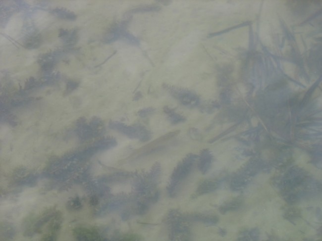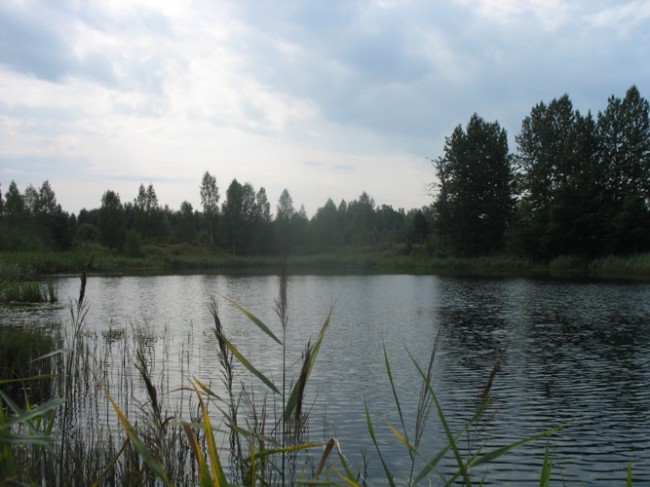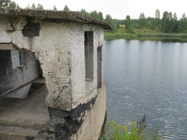 Ciekawe .Po chwili oczom naszym ukazuje się budowla . Przed nią małe rozlewisko w formie stawu lub jeziorka. Woda czysta , pod powierzchnią widać ławice drobnych ryb.