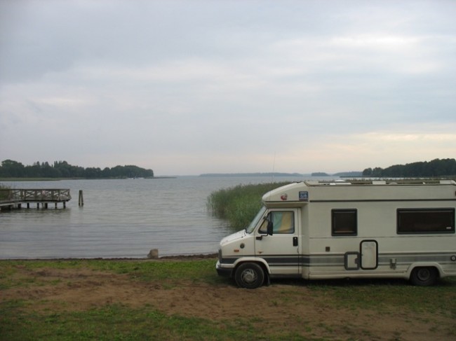 Zjechaliśmy na plażę w nocy, praktycznie przy świeżo, budowanym rondzie na trasie Węgorzewo Srokowo Kętrzyn. Nie sposób określić właściwego pasa ruch czy też którą częścią drogi należy jechać