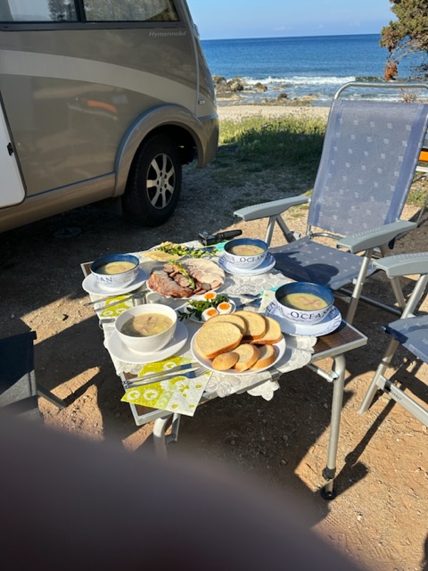 Dzisiaj wtorek 2 cudowne turkusy plaża Agiofili koło Wasiliki i plaża Gialos koło Egremi.Drogi jak dla kampera ok ale ja jestem cały czas ,zestresowana.Gialos nie byliśmy tu jeszcze polecił Aleksander.Ja z powrotem idę na piechotę :haha:Niestety wiatr wieje i fale duże zobaczymy jak rano.Kamperów jest kilka stoją w różnych miejscach.Zobaczymy ile tu wytrzymamy,bo słychać tylko huk fal!! |
