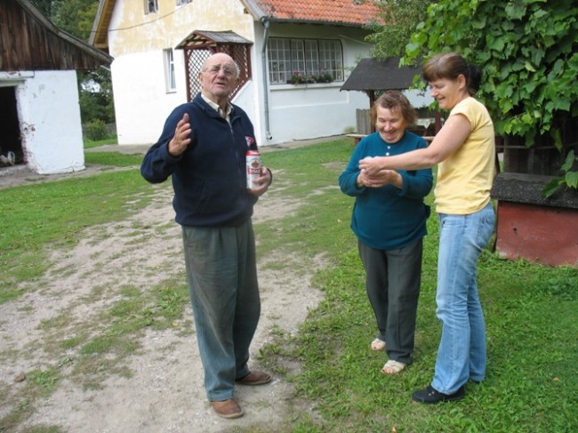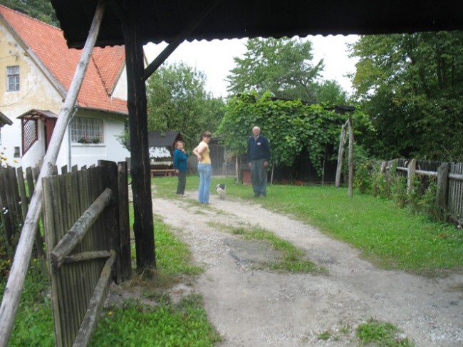 Zaraz na stół wyjeżdżają jabłka ser , chleb kiełbasa i…. wino własnej roboty