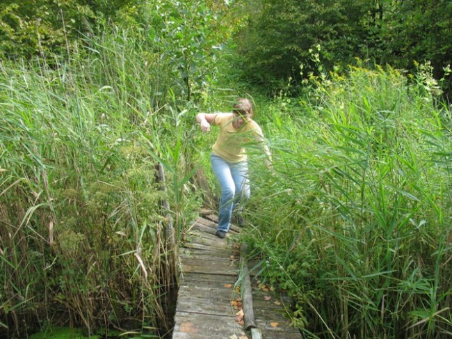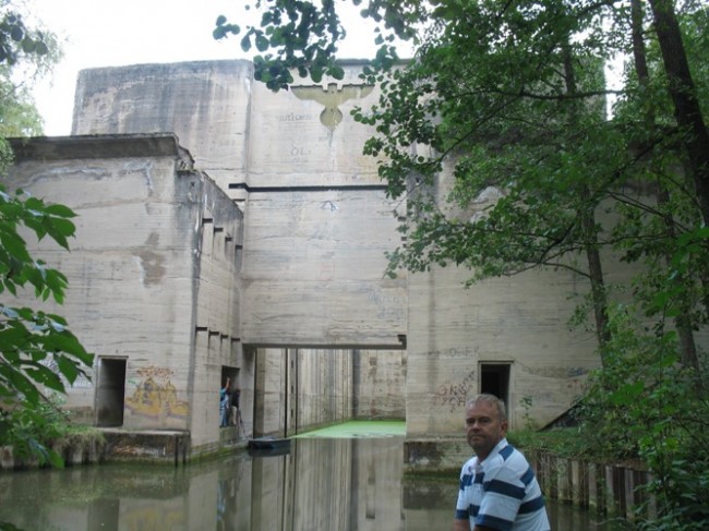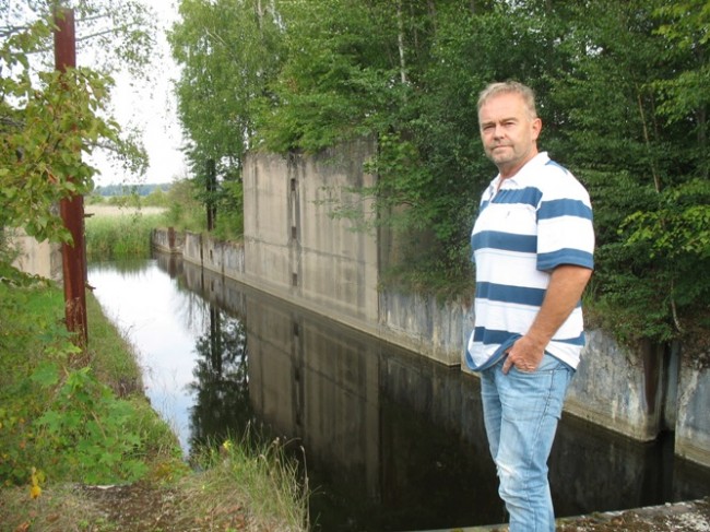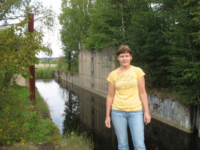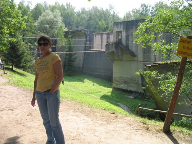 Oprowadza nas Bazyli i pokazuje ruiny śluzy. Mówi jak przejść i obejść dookoła, tak by wejść na śluzę ,a raczej na to co po niej zostało