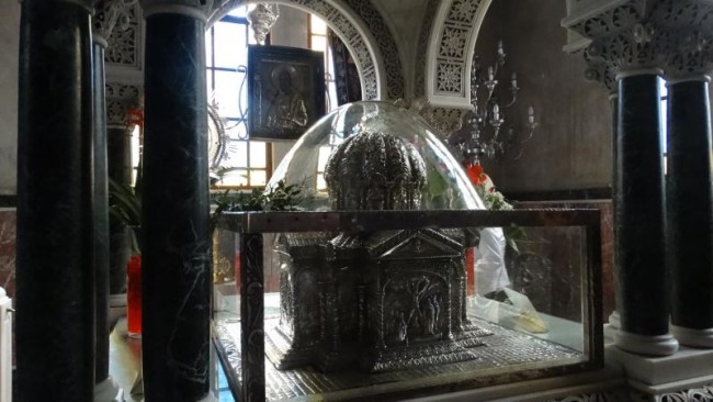 W bazylice znajdują się relikwie krzyża na którym św. Andrzej dokonał żywota.
