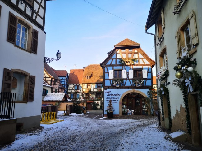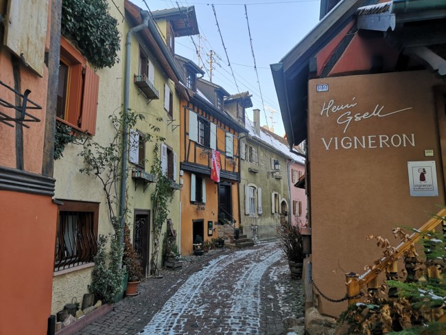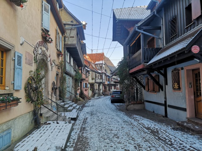 12.01. Dość szybko przejechaliśmy Szwajcarię i ponownie wjechaliśmy do Francji, a będąc w Alzacji, wstąpilismy jak zawsze do ulubionego Equisheim 48.046902 7.30706, do winiarni Stoffel zaopatrzyć się w Alzackiego Gewurztraminera i pospacerować po bajkowych uliczkach.