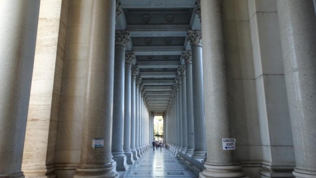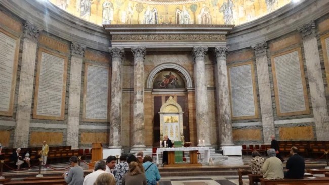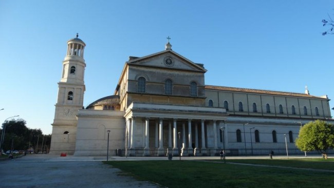 Wstajemy wcześnie rano, robimy obsługę kamperka, nabieramy wody, płacimy za pobyt po 17E za dobę i wyjeżdżamy już kamperkiem do Bazyliki S. Paolo fuori le Mura czyli