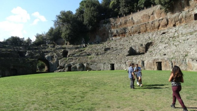 Po drodze zatrzymujemy się "u Etrusków" w Sutrii, Krysia jest tak zmęczona po Rzymie, że nie chce wyjść z samochodu. Ja zwiedzam amfiteatr i skałki z "dziurami".