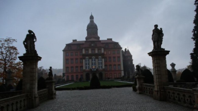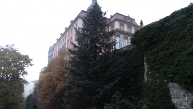 Z Karpacza strasznie dziurawą drogą jedziemy przez Wałbrzych do zamku Książ.
